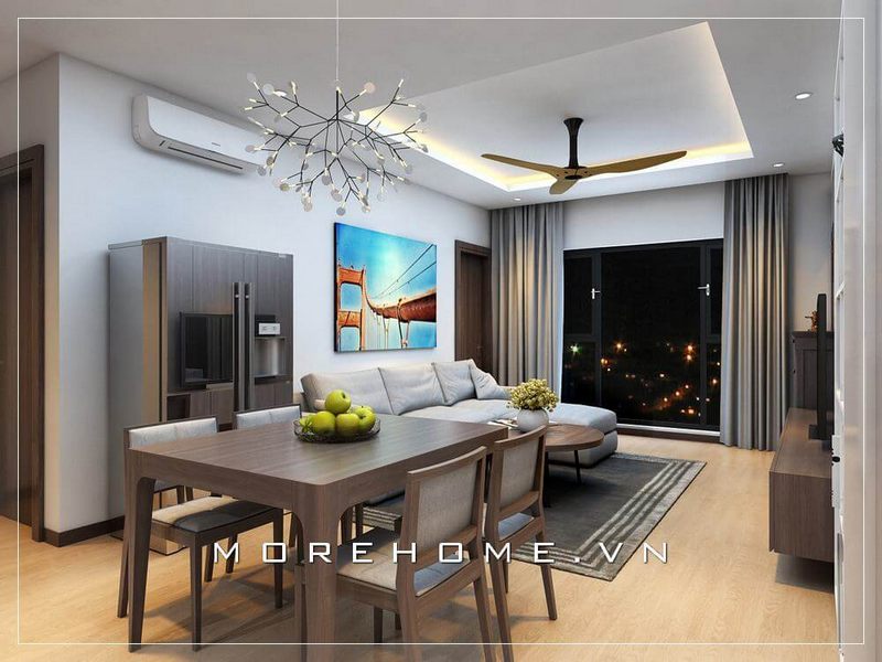Xu hướng thiết kế mở điển hình với cách phân chia phòng khách liền phòng ăn không vách ngăn đã tạo nên sự thông thoáng, độc đáo đặc biệt với các căn hộ chung cư hiện đại.