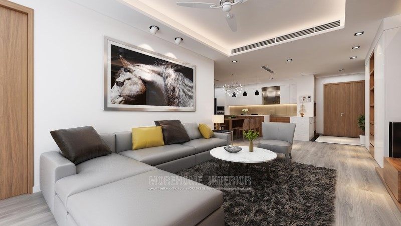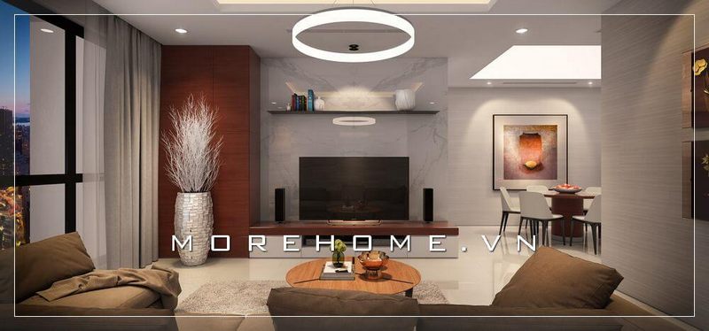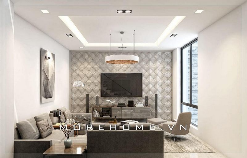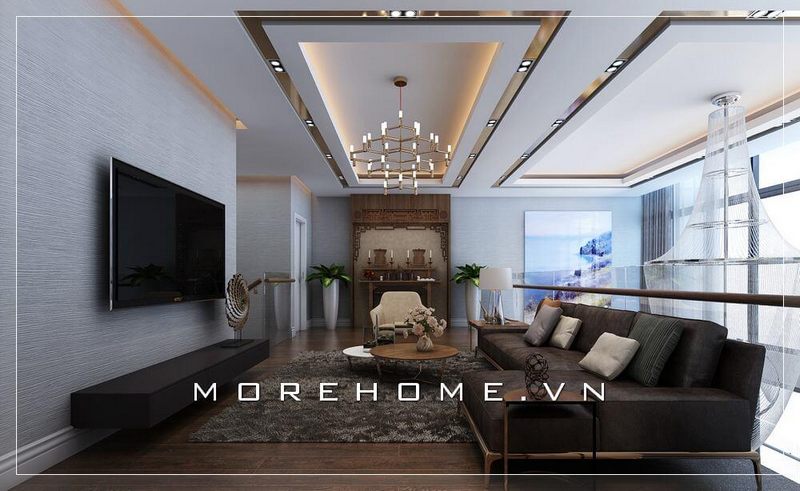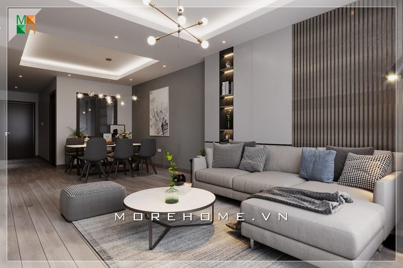 Mang không khí sang trọng hiện đại đến với không gian sống của gia đình bằng mẫu thiết kế phòng khách chung cư hiện đại của Morehome.