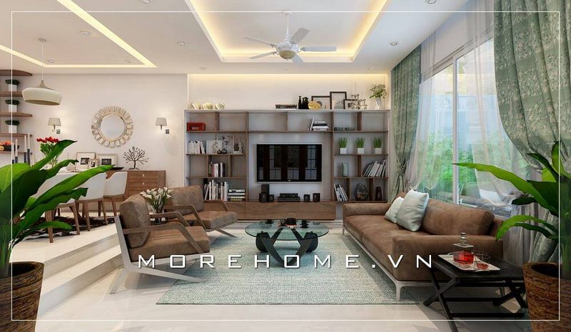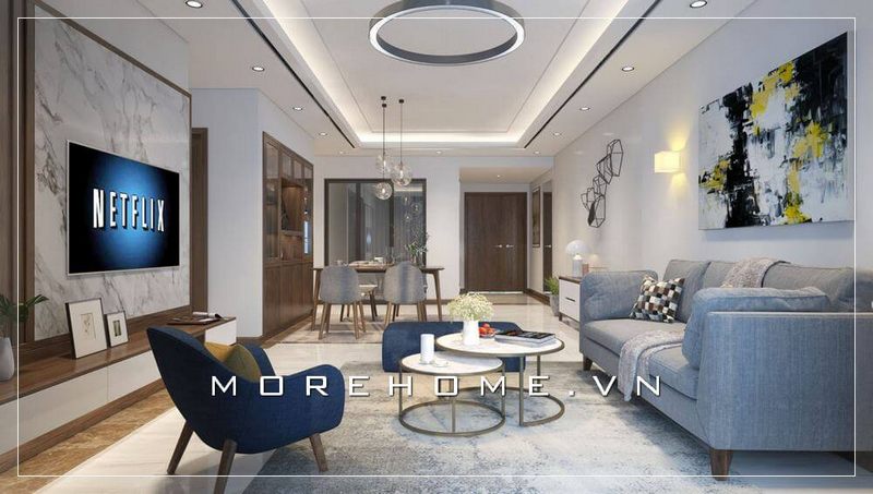 Mang sự tinh tế và ấn tượng đến với không gian sống của gia đình bằng mẫu thiết kế phòng khách chung cư của Morehome.
