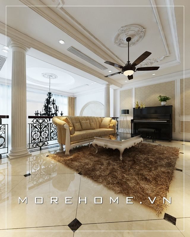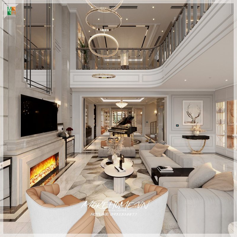 Thiết kế nội thất phòng khách biệt thự phong cách tân cổ điển sang trọng, đẳng cấp