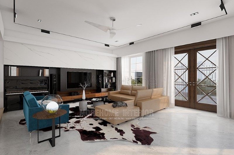 Thiết kế nội thất phòng khách phong cách đương đại đẹp cho biệt thự, nhà phố