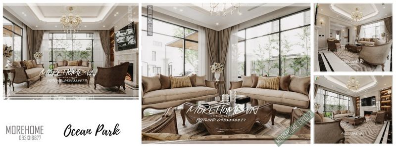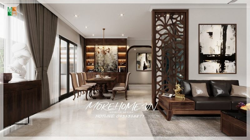 Thiết kế nội thất phòng khách theo phong cách hiện đại kết hợp các đường nét cổ điển tạo điểm nhấn