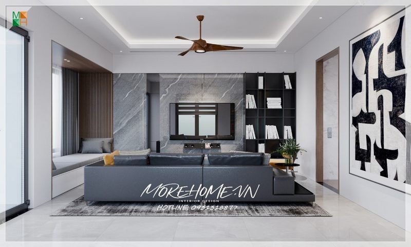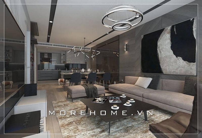 Do thiết kế cao cấp của các kiến trúc sư Morehome, các mặt tường đá viền mây đã được tạo ra, mang lại cho không gian phòng khách căn hộ mới mẻ hiện đại và tránh đi cảm giác nhàm chán.