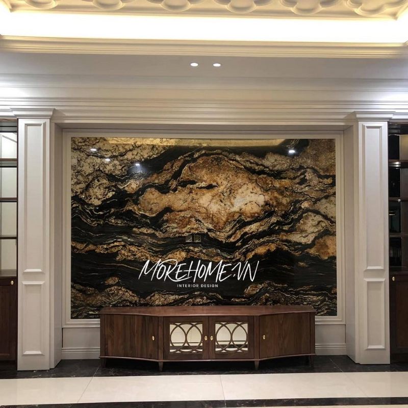 Đá ốp vách tivi được nhiều chủ nhà lựa chọn để tạo nên một không gian phòng khách cao cấp và hiện đại để thu hút ánh nhìn.