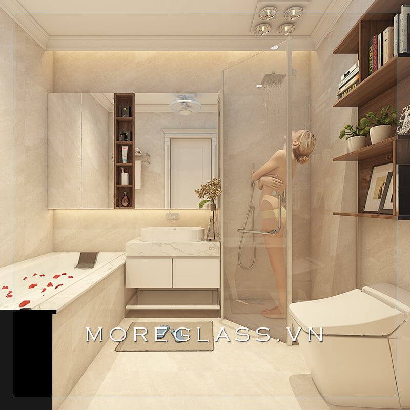 Cuốn hút với mẫu thiết kế phòng tắm kính đẹp kết hợp thiết bị vệ sinh đơn giản, tiện nghi